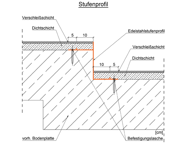 Hartstoffmörtelschicht, Aufbaustärke d = 5 – 10 mm - Edelstahlrandaufkantung